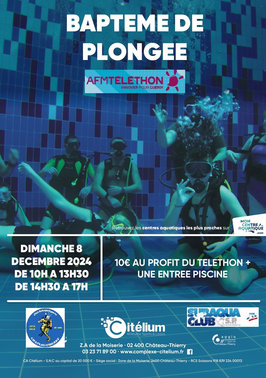 Baptêmes de plongée au profit du Téléthon, dimanche 8 décembre :